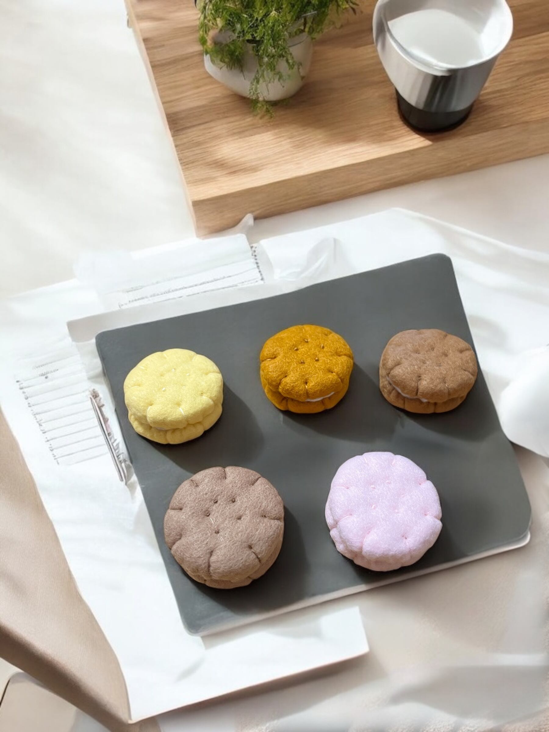 ころんと可愛い、フェルトのお菓子マグネットができました♡