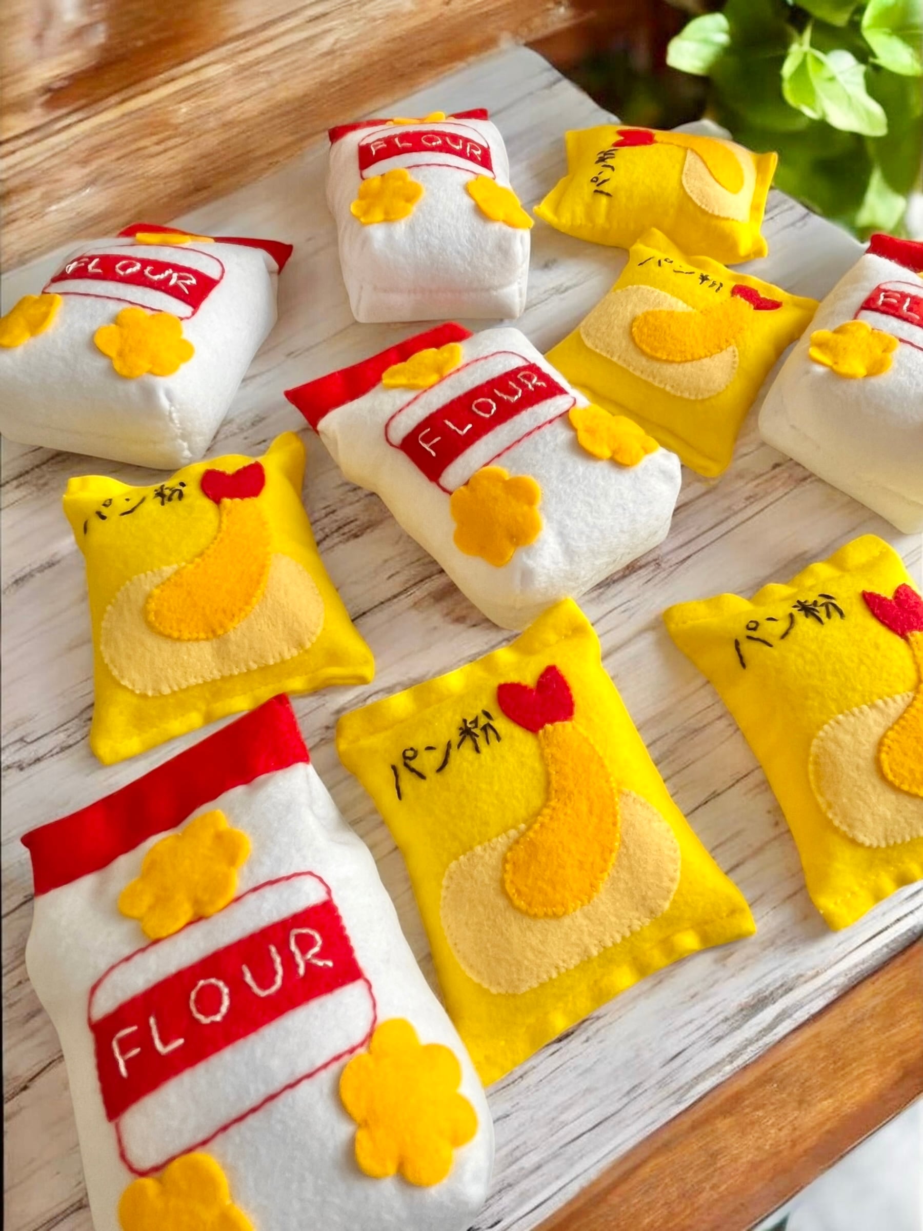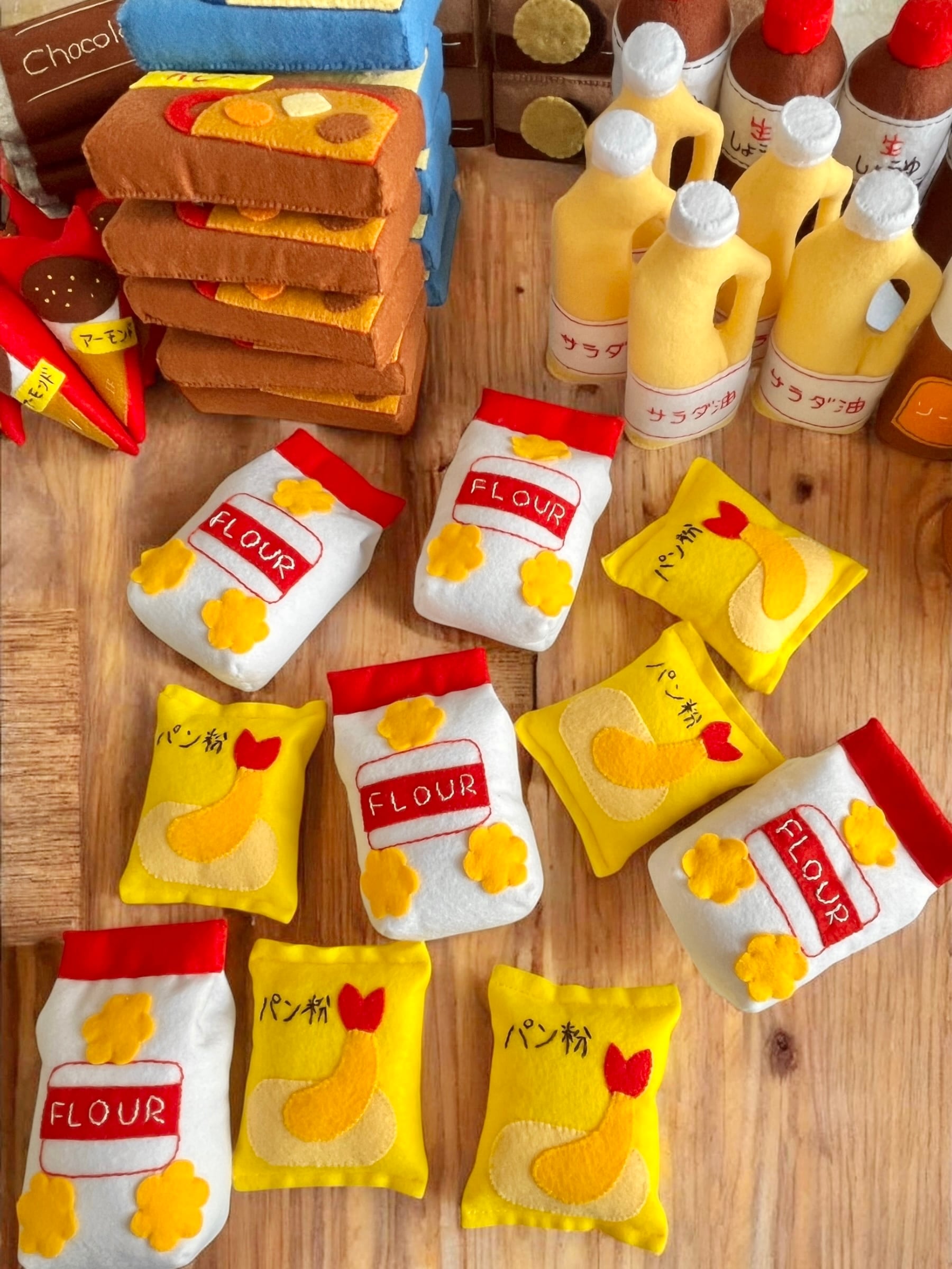 フェルトで作った小麦粉の袋とパン粉です。